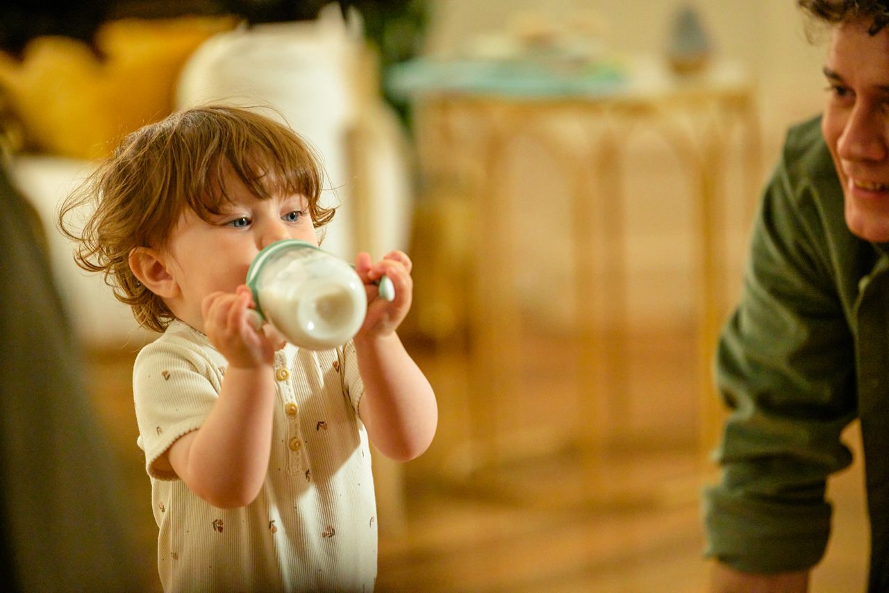 Kan je kindje zitten en blijft hij goed in balans? Leer hem dan drinken uit een open drinkbeker. Hij kan de beker met zijn twee handjes misschien zelf al wel vasthouden. Lukt dit nog niet, dan kun je hem nog even helpen. Kies om te beginnen een moment op de dag waarop je kleine goed uitgerust is, bijvoorbeeld na het middagdutje. Oefen het drinken uit een beker één tot twee keer per dag en geef de andere drankjes nog even uit de fles.