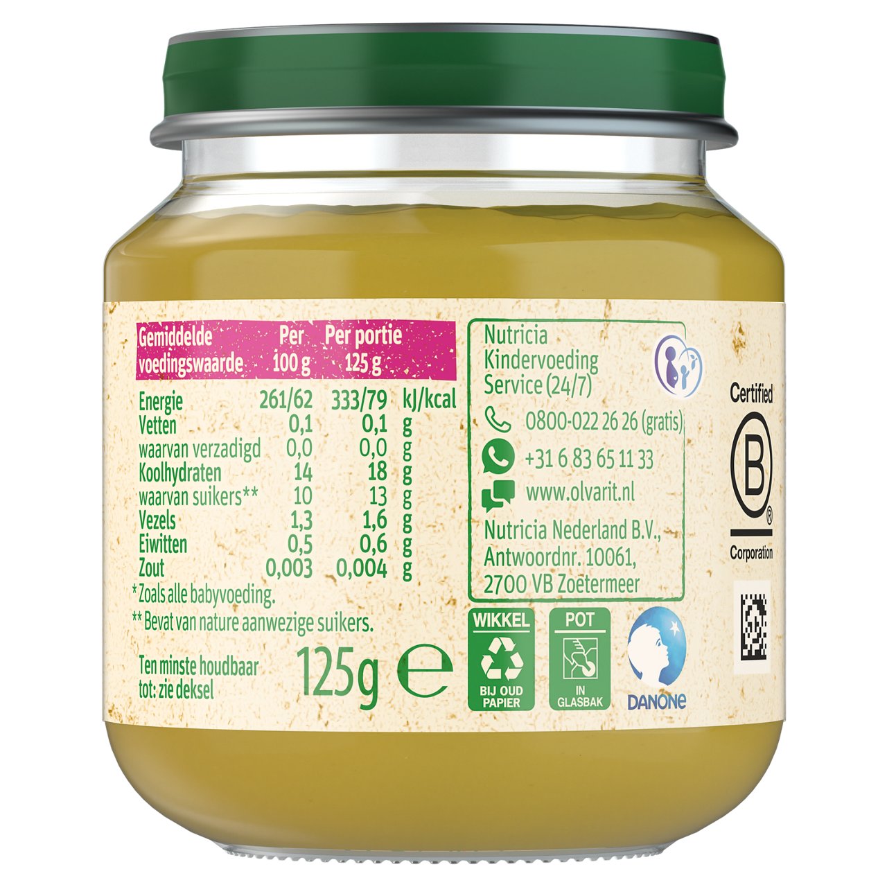 Olvarit Appel Mango Banaan is een heerlijk fruithapje om te starten met de eerste hapjes. Tot de leeftijd van 6 mnd is borstvoeding de belangrijkste voeding en is dit product uitsluitend aanvullend.