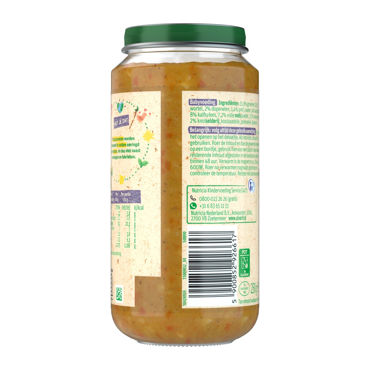 Olvarit Wortel Kalfsvlees Aardappel is een babyhapje met pure & natuurlijke ingrediënten voor baby’s van 15+ maanden. De babyvoeding heeft een herkenbare smaak & textuur dat bijdraagt aan de smaakontwikkeling.